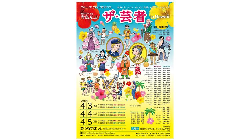 ヨーロッパ諸国を巡っていたころ(1980年代ですが)、どの町にもある古楽譜屋で 「ザ・ゲイシャ」というヴォーカルスコアを見かけ、平易な音楽だったので求めました。 乏しい情報によると、19世紀のジャポニズムに乗った荒唐無稽な物語のようです。しかし 「イリス」「ミカド」「蝶々夫人」よりも日本人の名が現実に近く、中国人との違いも書き分けられている、ギャグとしか思えない展開がスピーディーであることなどから、今回の上演に踏み切りました。しかし音楽がやや卑俗であること、出演者に独唱が少ないこと、合唱がやたらに多いことなどから、常の公演よりも大掛かりな改変が必要だと考え、舞台を19世紀末の日本(つまり開国したばかり)ではなく、昭和14年のハワイに設定し、西洋人の多くをイギリス人ではなくアメリカ人に変え(英語圏ではある )、人物設定を掘り下げた結果、芸者たちは幻想世界の住人になりました。歌われる曲にもフォスターの名曲などを散りばめて、どなたにもお楽しみいただけるように致しました。出演者の多くは立候補による芸達者な歌手が揃いました。しかし、依然としてノルマを持っています。何とぞ彼らにご注文をお願い致します(事務局へのご連絡も同様)。また、 出演者への贈り物は花や食品でなく、少額で構いませんので、金銭にしていただけないでしょうか。ノルマを消化し切れない彼らを、 どうかお助けください。お出でを待っています。