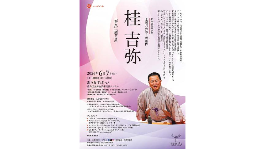 2024年「尼崎市民芸術賞」を受賞。東京でも毎月赤坂で独演会を開催、より意欲的に高座に取り組んでいる吉弥師。