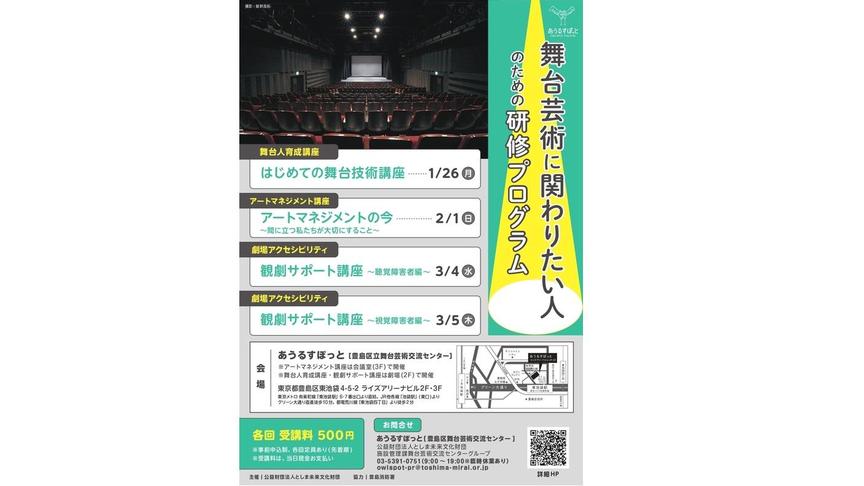 舞台芸術分野の第一線で活躍する劇場技術者や、アートマネジメントの専門家、障害をもつ当事者と共に、舞台芸術の創造および公立劇場の役割等について現場で実践的に活用するための知識を学ぶプログラム。